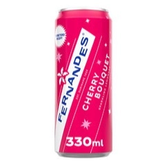 Verfrissende, bruisende kersensmaak (Fernandes Cherry Bouquet, 330 mL blik).