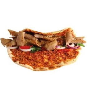 Knapperige Turkse pizza belegd met gekruid gehakt, gevuld met mals, gekruid kalfdonervlees, frisse salade en huisgemaakte saus naar keuze.